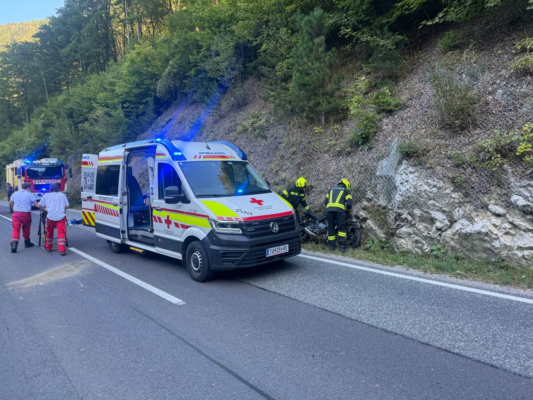 Am Freitag, den 19. September 2025, wurde die Freiwillige Feuerwehr Pernitz um 16:20 Uhr zu einem Verkehrsunfall mit einem Motorrad auf die B21, Höhe Ortmann bei der Kläranlage, alarmiert.