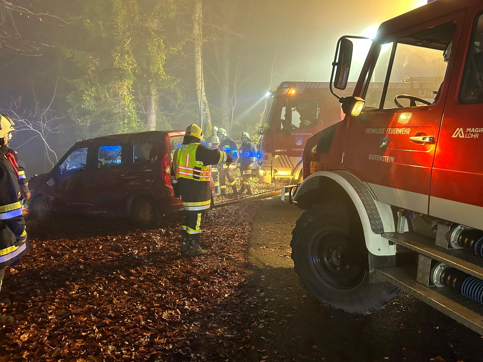 Gemeinsam mit der FF Gutenstein, die kurz vor uns an der Einsatzstelle eingetroffen war, wurde die Person aus dem Fahrzeug befreit und an das Team des Roten Kreuzes übergeben. Währenddessen konnten die weiteren alarmierten Feuerwehren – Rohr im Gebirge, Puchberg am Schneeberg und Schneebergdörfl – ihre Anfahrt beenden, da keine zusätzlichen Kräfte für die Menschenrettung mehr erforderlich waren.